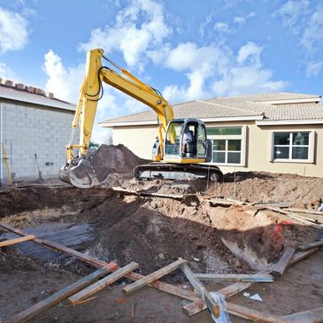 Before building a house, garage, or addition, we excavate for footings, basements, crawlspaces, or slab-on-grade foundations.